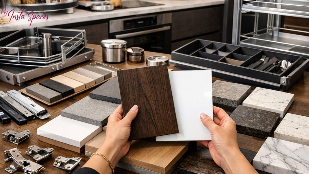 Plywood offers long-term strength and moisture resistance. Engineered boards provide budget-friendly alternatives. Your cabinet material forms the backbone of your kitchen — invest here for longevity.