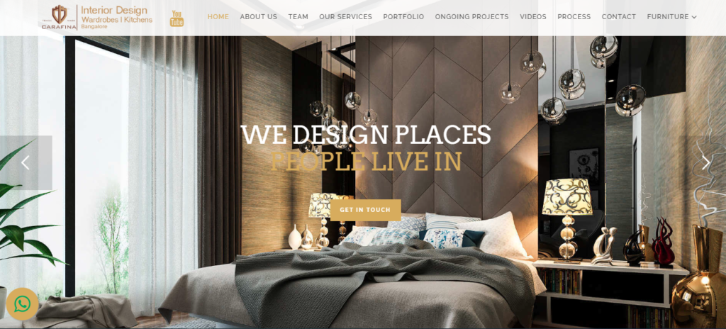 Carafina is a Bangalore-based interior design studio with a clear philosophy — they design places people actually live in. Their services include modular kitchens, wardrobes, furniture, and complete residential interiors. They are known for creating functional, aesthetically refined spaces that balance beauty with practicality. Their portfolio reflects a clean, modern sensibility that suits contemporary Bangalore apartments well. Visit: carafina.in