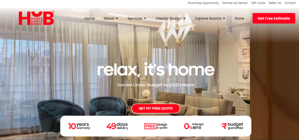 Homworks positions itself as a complete home interior partner, covering everything from modular kitchens and bedrooms to living rooms and storage solutions. They are known for a streamlined process that removes the stress of coordinating multiple vendors. Their service model is designed to be transparent and guided, making them a reliable choice for first-time homeowners who want full-home interiors handled in one place without budget surprises. Visit: homworks.com